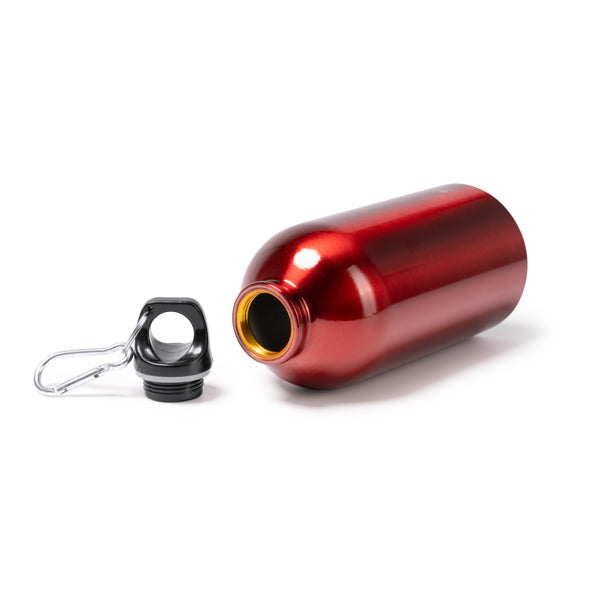 Bidón de acero inoxidable 304 reciclado con capacidad de 500 ml, resistente y pensado para el día a día. Su tapón a rosca con junta de silicona asegura un cierre hermético y sin goteos, mientras que el mosquetón integrado en el tapón permite transportarlo fácilmente en mochilas o bolsas.