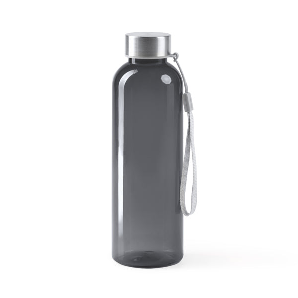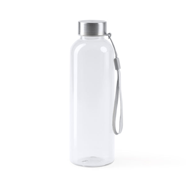 Bidón de RPET con cuerpo translúcido y capacidad de 600 ml, una opción ligera y práctica para el día a día. Incluye cinta de transporte para mayor comodidad y destaca por su diseño actual que combina estilo con respeto al medio ambiente, gracias a su fabricación en material reciclado.