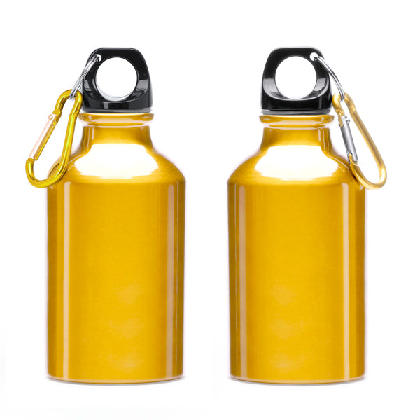Bidón de aluminio con mosquetón, compacto y resistente, con capacidad de 330 ml. Incorpora tapón en color negro y un mosquetón metálico a juego con el acabado de la botella, lo que le aporta un diseño uniforme y atractivo.