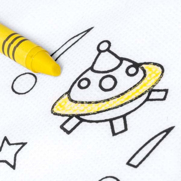 Mochila infantil de cuerdas fabricada en material non-woven, con divertido diseño para colorear. Incluye 5 ceras de colores variados para que los más pequeños den rienda suelta a su creatividad.