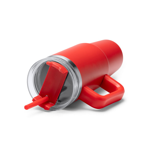 Taza térmica de doble capa en acero inoxidable 304 reciclado con amplia capacidad de 870 ml, ideal para mantener tus bebidas a la temperatura óptima durante más tiempo. Incluye tapa con pajita a juego y cierre a rosca hermético, que aportan comodidad y seguridad en cada uso.